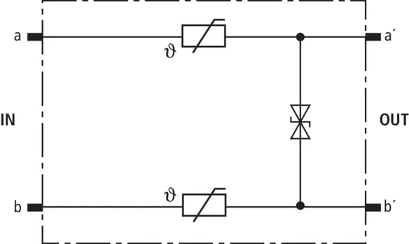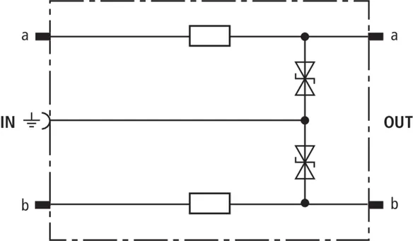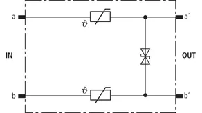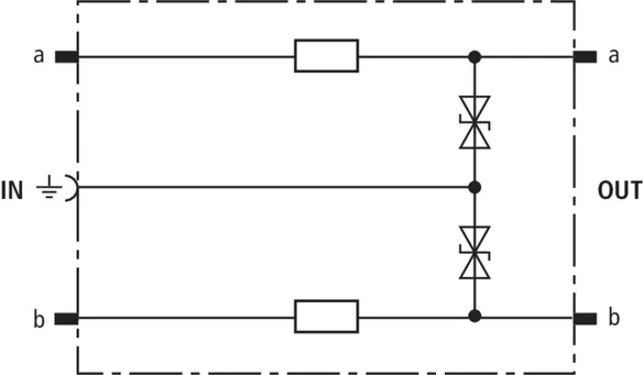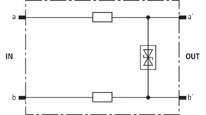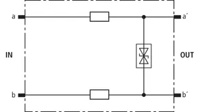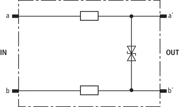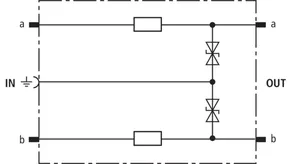 Beskyttelsesstik (et lederpar), energetisk koordinerbar med DRL-stikmagasin til brug som 1-faset beskyttelse af tilsluttet udstyr med højfrekvente transmissioner som G.703 eller ISDN U2m, S2m og S0. Til montage i EF 10 DRL. Det anbefales kun at installere stikket i kombination med DRL-stikmagasin.