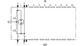 Beskyttelsesstik (et lederpar), energetisk koordinerbar med DRL-stikmagasin til brug som 1-faset beskyttelse af tilsluttet udstyr med afkoblingsimpedans. Særligt egnet til signalkredse med fælles referencepotentiale. Jording via EF 10 DRL. Kun til skillelister eller DRL-stikmagasiner.