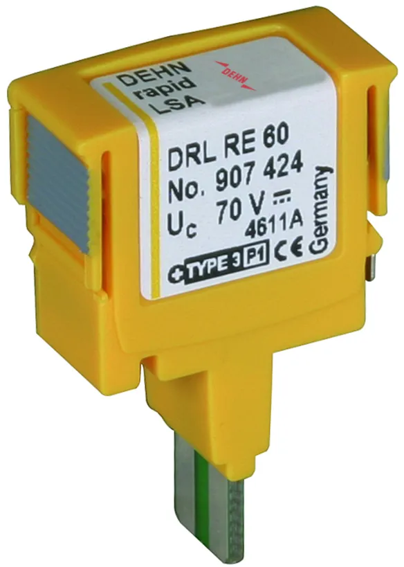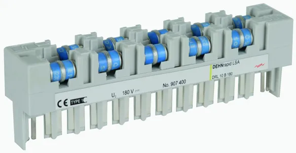 Lynstrømsbærende DRL-stikmagasin til 10 lederpar til næsten alle anvendelser. Kan udvides til en kombiafleder ved hjælp af et DRL-beskyttelsesstik. Den indbyggede skillelistekontakt muliggør afprøvning, adskillelse og patchning uden at fjerne beskyttelsen. Det 3-polede gasgnistgab har "fail-safe"-funktion med visuel fejlindikation.