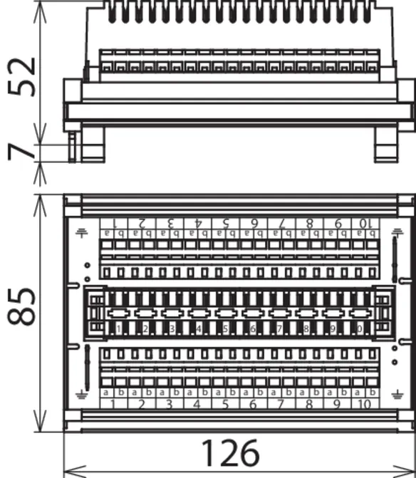 | Jord via | DIN-skinne / Fladstik 6,3 mm |