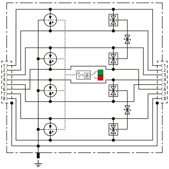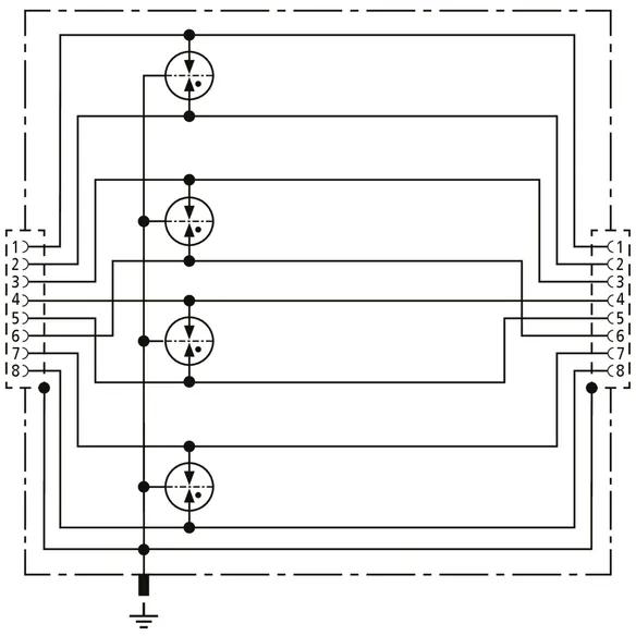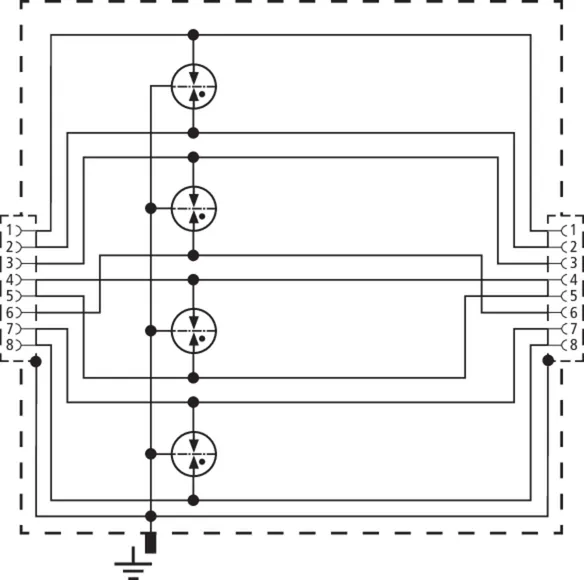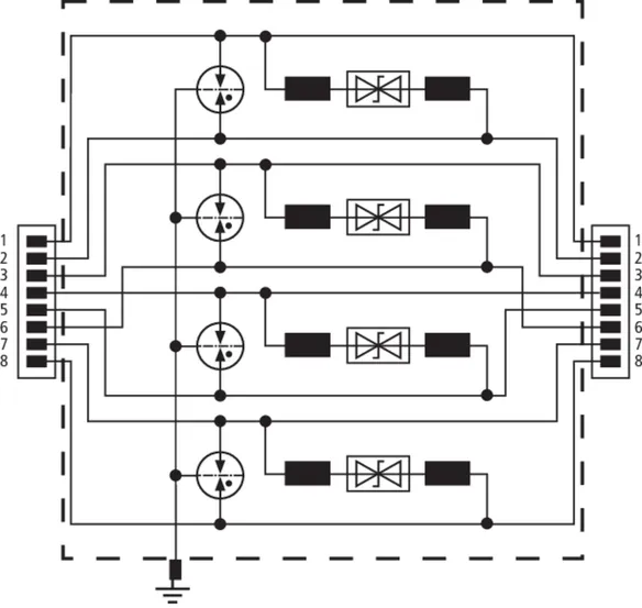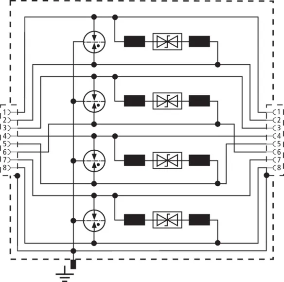 Universel afleder til industrielt ethernet, strøm over ethernet (PoE++ / 4PPoE efter IEEE 802.3) og lignende anvendelser i strukturerede kabelføringer efter klasse E op til 250 MHz. Beskytter alle lederpar vha. kraftige gasgnistgab og et tilpasset matrixfilter pr. par. Fuldt skærmet udførelse med sokler til DIN-skinnemontage (op til 1 Gbit ethernet).