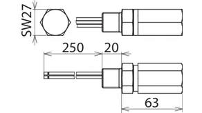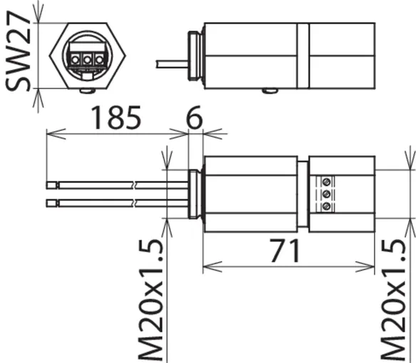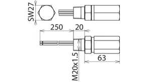 | Montage på felt-/apparatside | M20 x 1,5 udvendigt gevind / M20 x 1,5 indvendigt gevind |