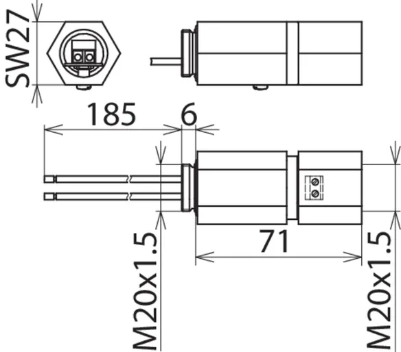 | Montage på felt-/apparatside | M20 x 1,5 udvendigt gevind |
