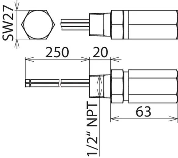 | Montage på felt-/apparatside | 1/2-14 NPT udvendigt gevind |
