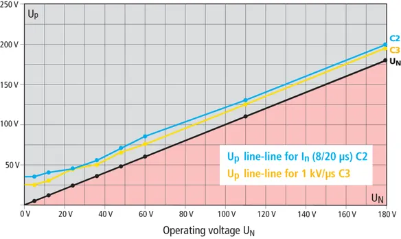 | Afledermærkespænding DC (UC ) | 180 V |