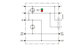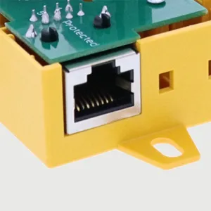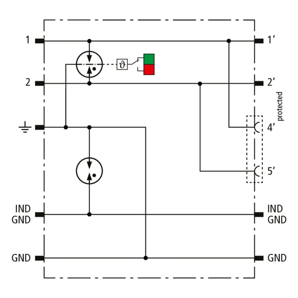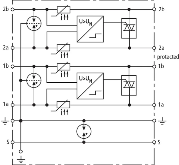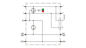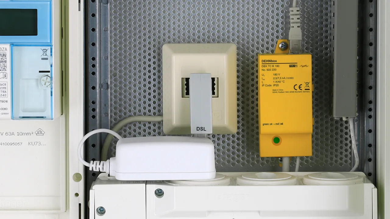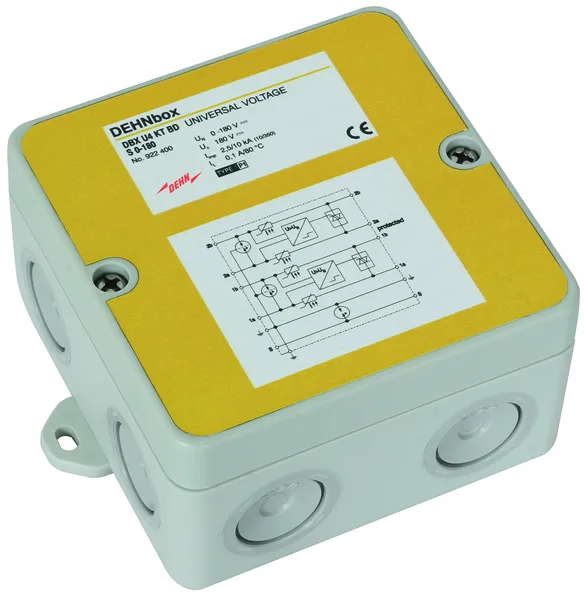 Pladsbesparende kompakt kombiafleder i kunststofkapsling med Push-in-tilslutingsteknik og funktions-/fejlmelding til beskyttelse af et lederpar med balancerede snitflader, særligt til telekommunikations-snitflader som VVDSL og G.fast (op til 1 Gbit/s). Mulighed for direkte eller indirekte jording af skærm. Valfri tilslutning af et lederpar eller et patchkabel på udgangssiden med RJ45-stik.