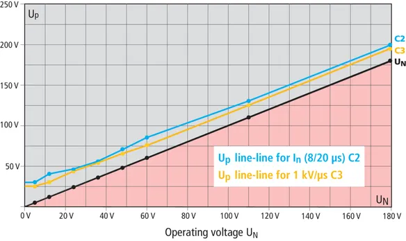 | C2 samlet mærkeafledestødstrøm (8/20 µs) ( In ) | 20 kA |