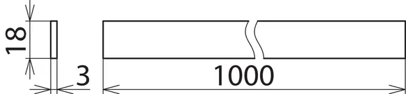 | Dimensioner (B x L x H) | 18 x 1000 x 3 mm |