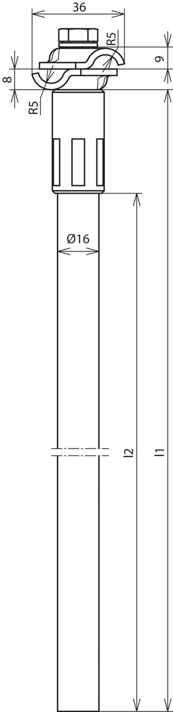 Afstandsstang af glasfiberforstærket plast (GFK) Ø16 mm, UV-stabiliseret, farve: lysegrå, konstant temperaturområde -50 til +100 °C.