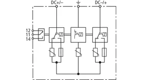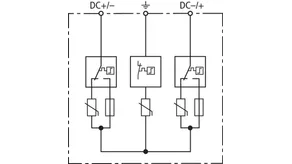 | Mærkeafledestødstrøm (8/20 µs) [(DC+/DC-) --> PE] (In ) | 12,5 kA |