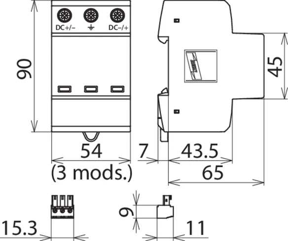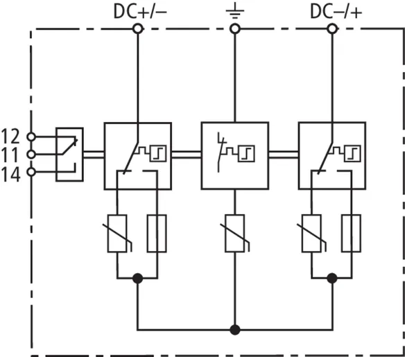 | Max. afledestødstrøm (8/20 µs) [(DC+/DC-) --> PE] (Imax ) | 25 kA |