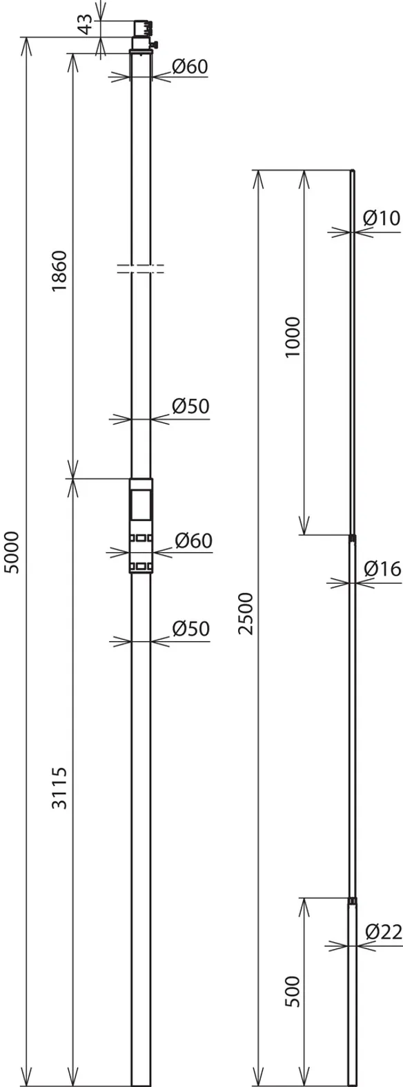 | Max. frilængde med indfangerstang (vægmontage) | 5000 mm |