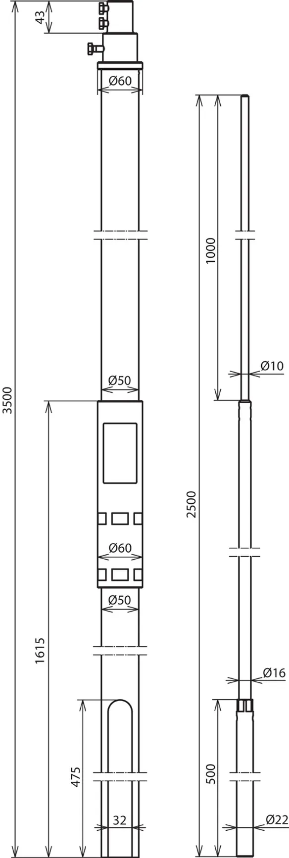 | Max. frilængde med indfangerspids (vægmontage) | 3500 mm |