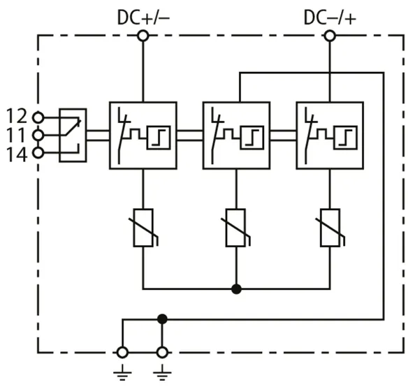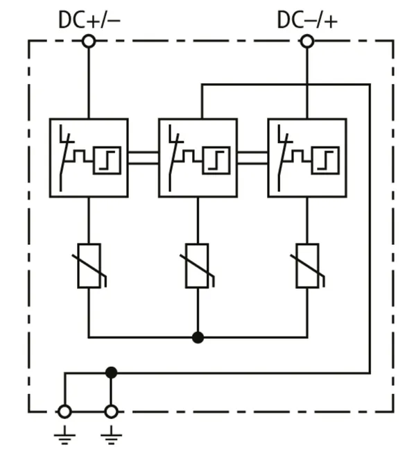 | Samlet afledestødstrøm (10/350 µs) [DC+/DC- -> PE] (Itotal ) | 12,5 kA |