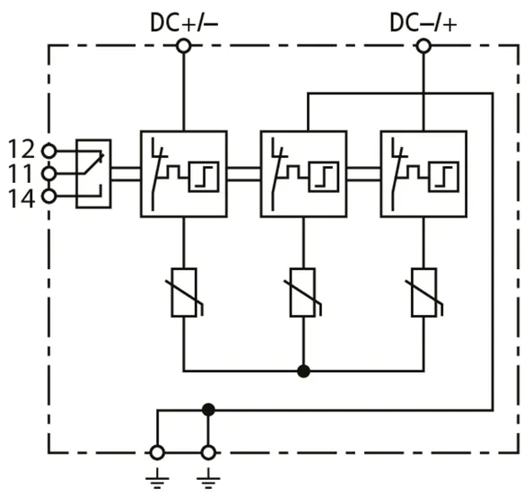 | Samlet afledestødstrøm (10/350 µs) [DC+/DC- -> PE] (Itotal ) | 12,5 kA |