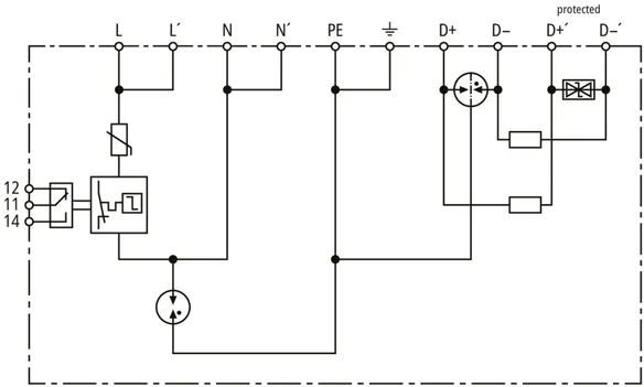 | Max. afledestødstrøm (8/20 µs) [N-PE] (Imax ) | 40 kA |