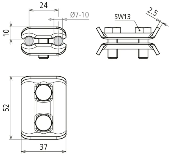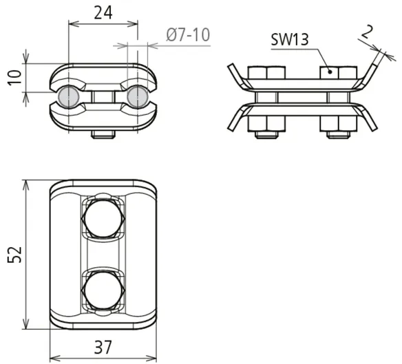 | Klemmeområde (rund / rund) | 7-10 mm |