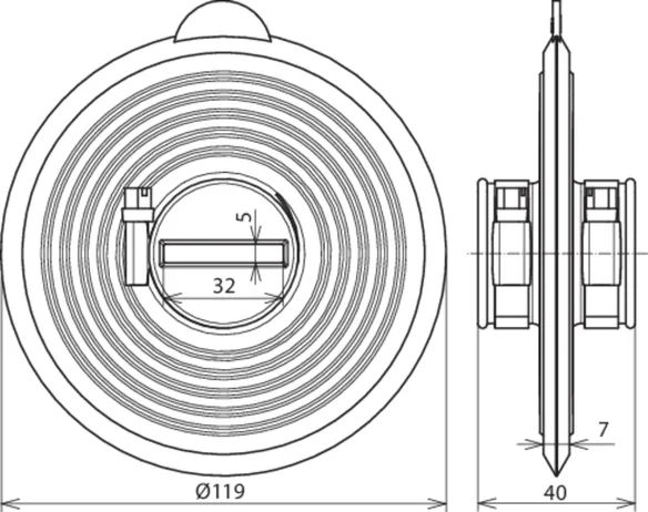 | Diameter tætningsring | 119 mm |