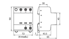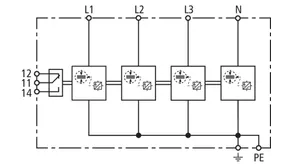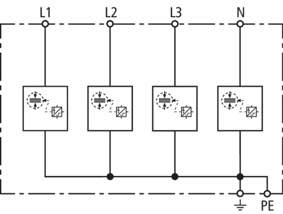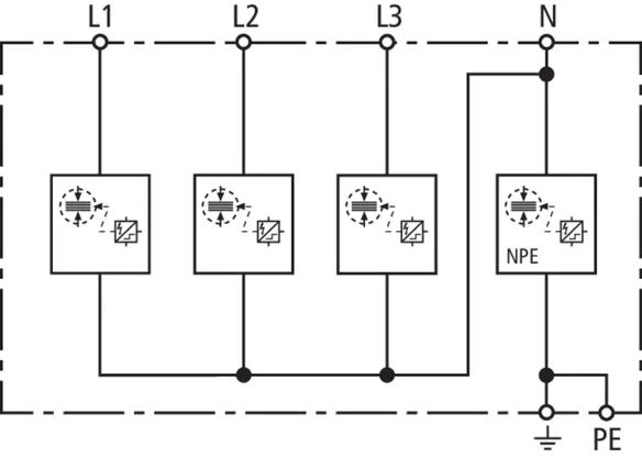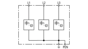 | Lynstødstrøm (10/350 µs) [L1+L2+L3-PEN] (Itotal ) | 22,5 kA |