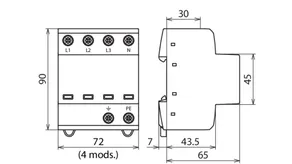 | Lynstødstrøm (10/350 µs) [L1+L2+L3+N-PE] (Itotal ) | 30 kA |