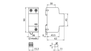 | Lynstødstrøm (10/350 µs) [L-N]/[N-PE] (Iimp ) | 7,5 / 15 kA |