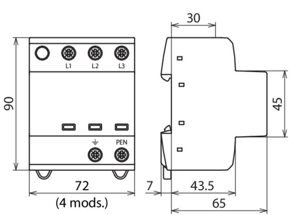 | Lynstødstrøm (10/350 µs) [L-PEN] (Iimp ) | 7,5 kA |