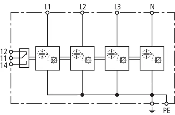 | Lynstødstrøm (10/350 µs) [L1+L2+L3-PEN] (Itotal ) | 37,5 kA |