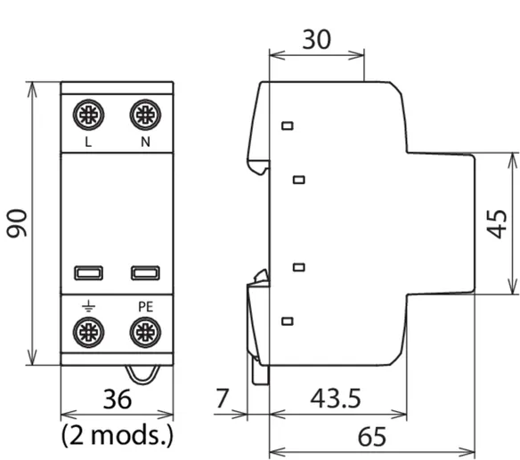 | Lynstødstrøm (10/350 µs) [L-N]/[N-PE] (Iimp ) | 7,5 / 30 kA |