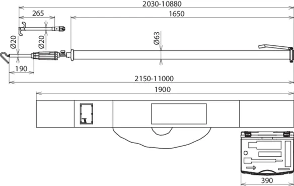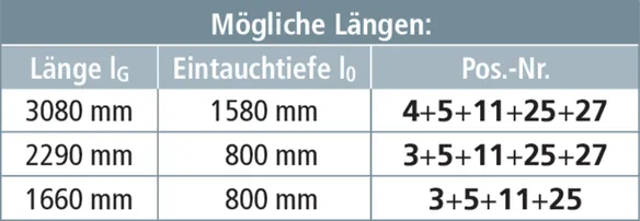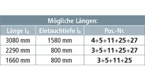 | Samlet længde (lG max / IG min ) | 11000 / 2150 mm |