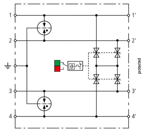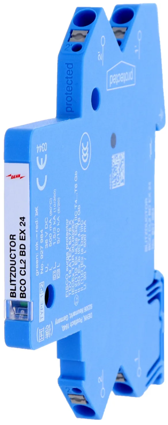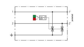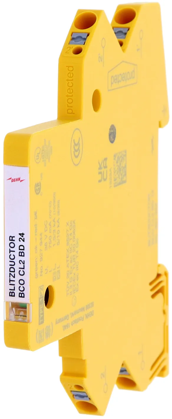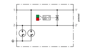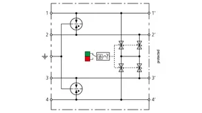 Pladsbesparende, kompakt overspændingsafleder med en bredde på 6 mm og push-in tilslutningsteknik med statusvisning. Finbegrænsende, et-trins overspændingsbeskyttelse med højtydende dioder til beskyttelse af 2 individuelle ledere med et fælles referencepotentiale og asymmetriske grænseflader.