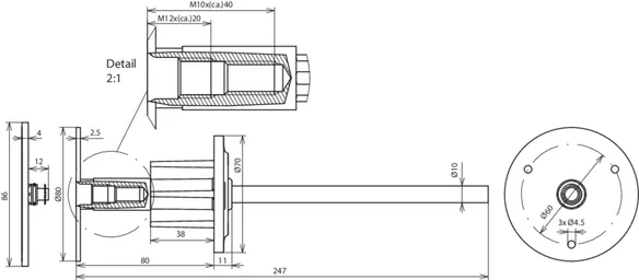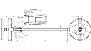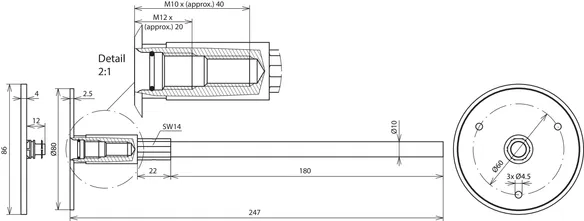 Med tilslutningsstang (I = 180 mm, Ø10 mm).