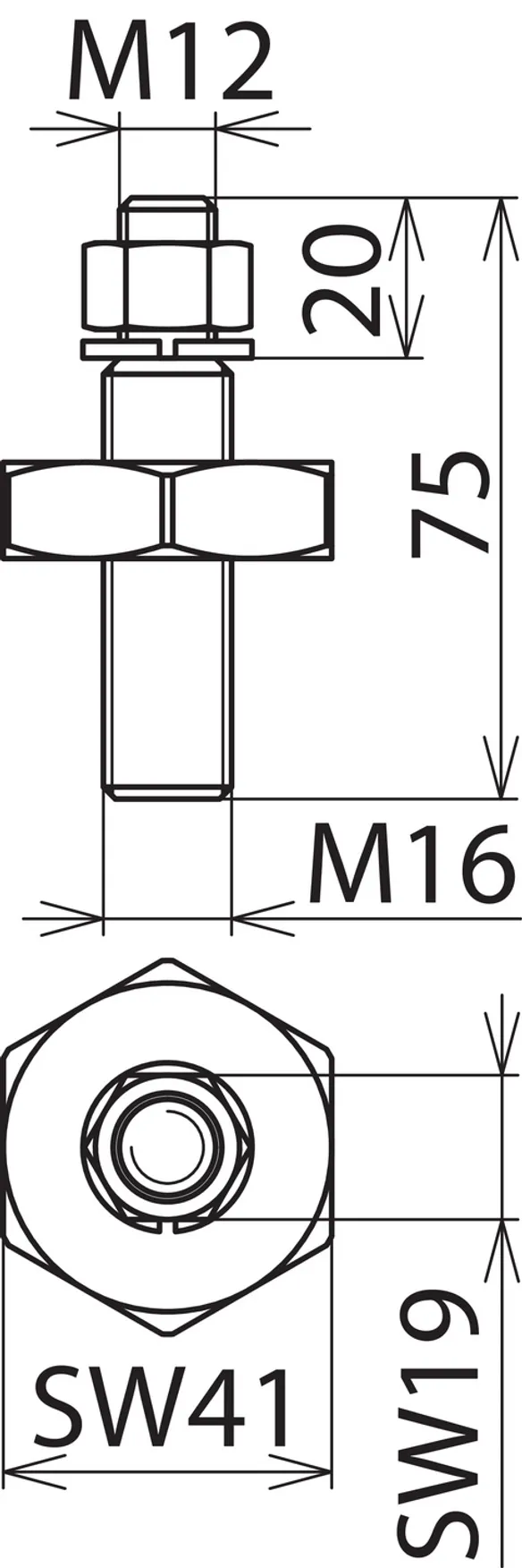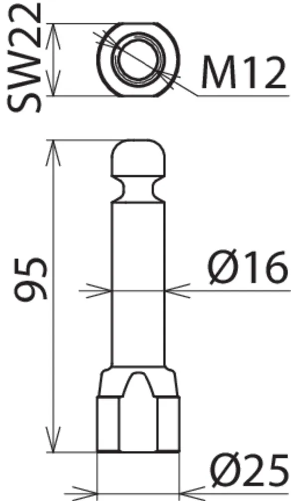 - Tilslutningsstykke med gevindbolt M12 eller M16