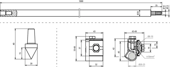 | Til jordspyd Ø (tilslutningsklemme) | 20-25 mm |