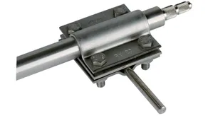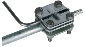 Tilslutningsklemme til forbindelse af rør (eksempelvis antennerør) i lynbeskyttelses-potentialudligningen med massiv / flertrådet leder til jordspyd.