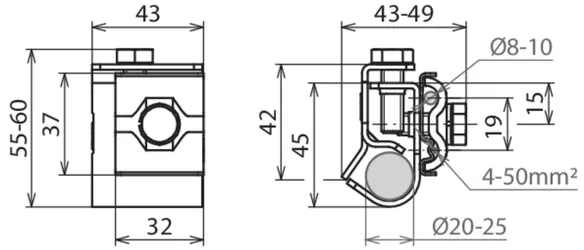 Tilslutningsklemme til jordspyd Ø20-25 mm NIRO (V4A)