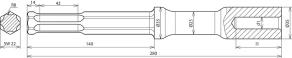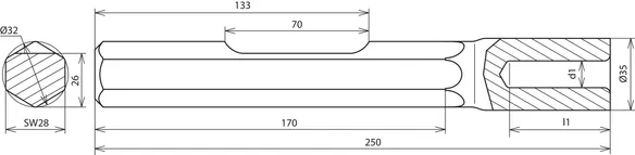 | Udførelse | Sekskant SW 28 (1 1/8'') |