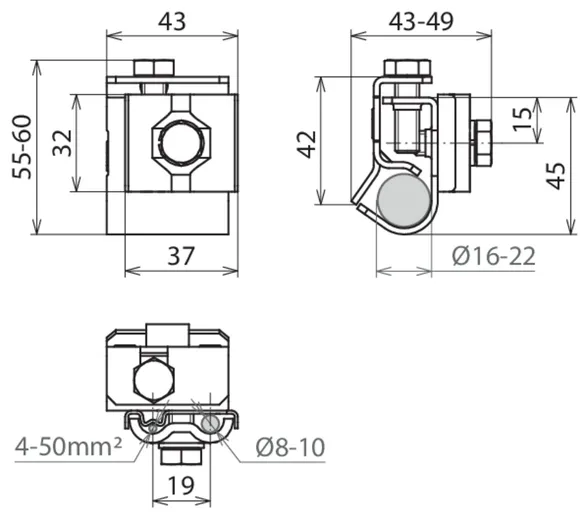 | Klemmeområde (rund) | 6-10 mm |