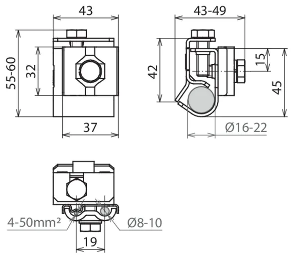 | Klemmeområde (rund) | 8-10 mm |