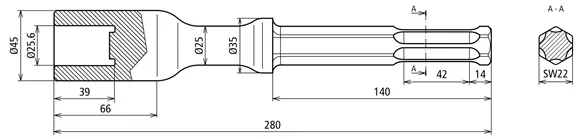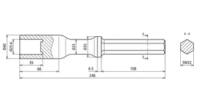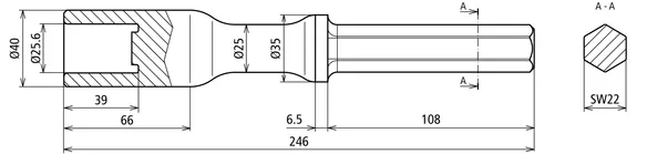 | Udførelse | Sekskant SW22 x 108 mm |