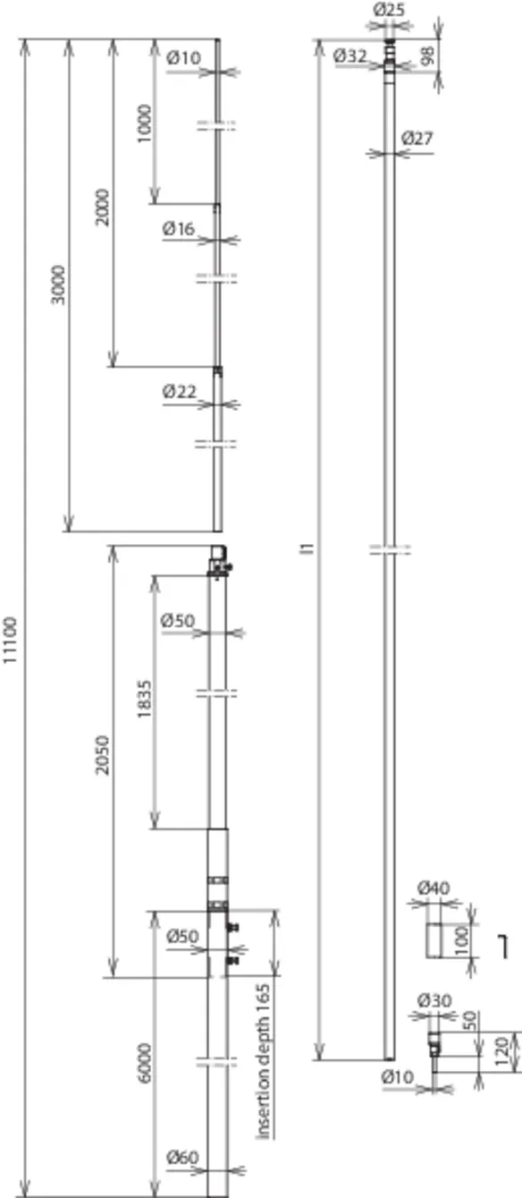 Maksimal totallængde af HVI-powerleder 11,0 m ved lynbeskyttelsesklasse I.