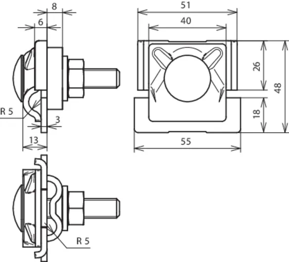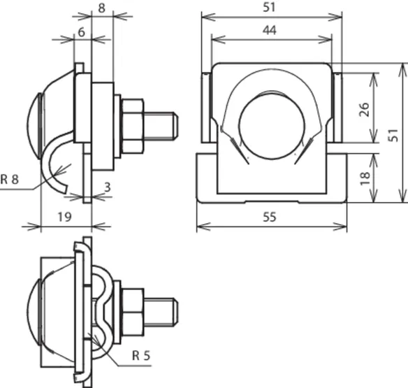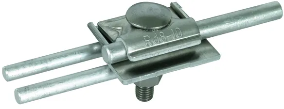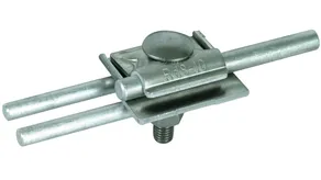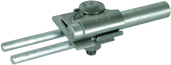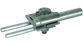 Fangstangsklemme til forbindelse af indfangerstænger/-spidser med én hhv. to ledere; to tilslutningsledere giver bedre fordeling af lynstrømmen og reduktion af sikkerhedsafstanden.