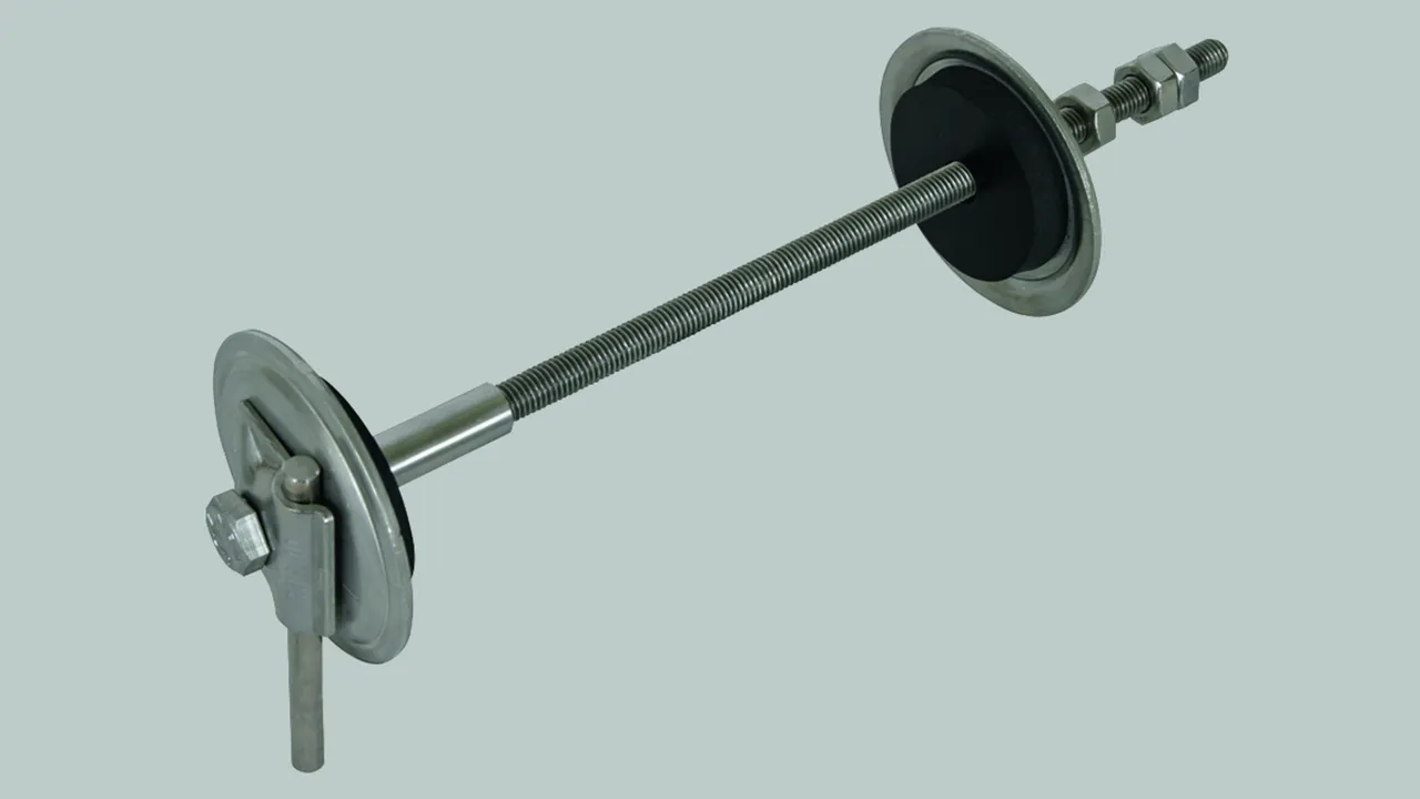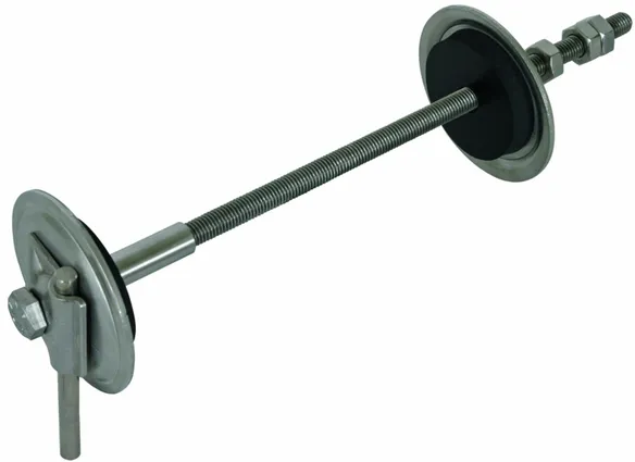 Installation kan gøres indefra. Gevindstangen kan holdes af låsemøtrikkerne (indvendigt), imens at skruerne spændes.