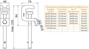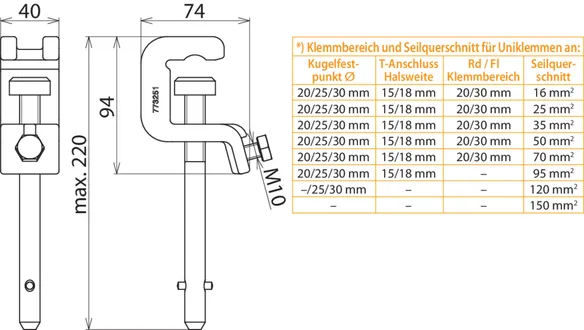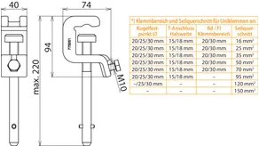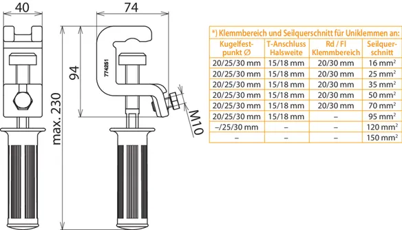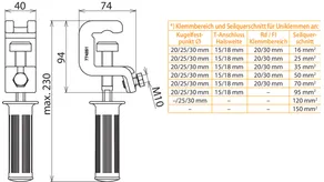 | *) see Table clamping range and max. cable cross-section for universal clamps | |