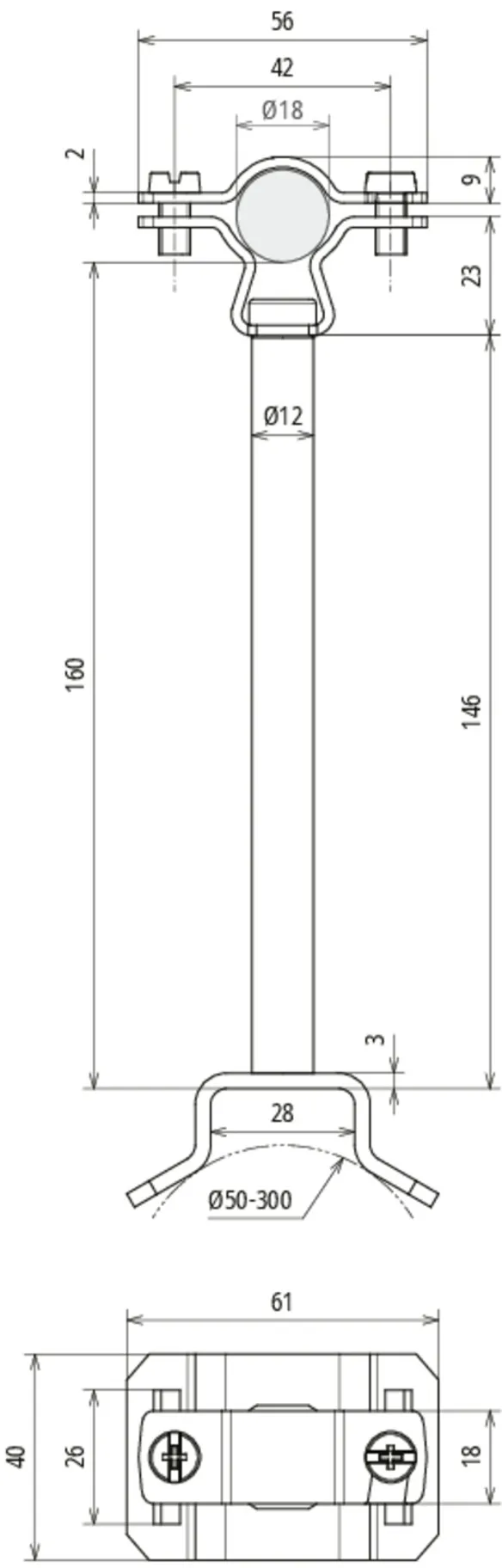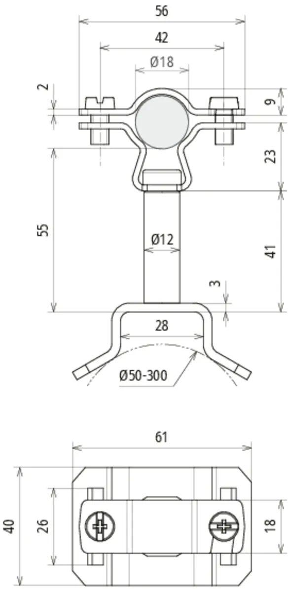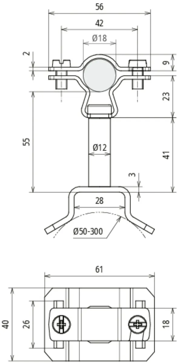 | Klemmeområde (rør) | 50-300 mm |