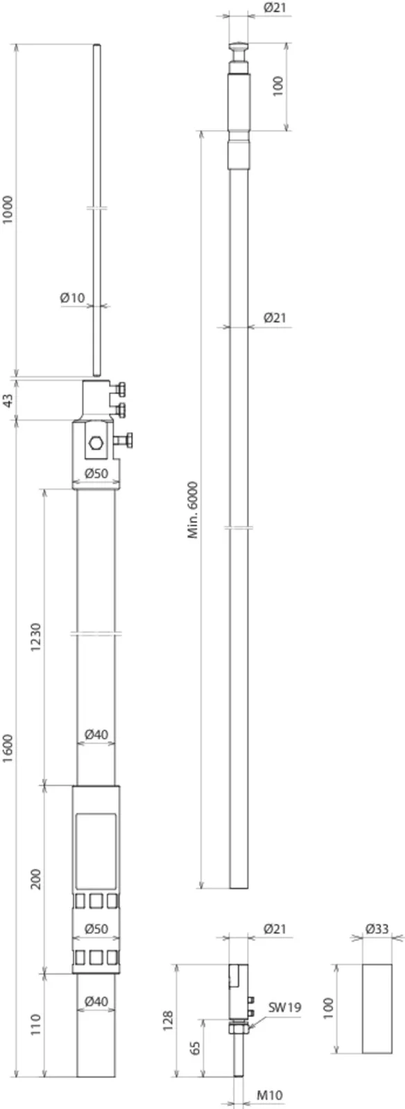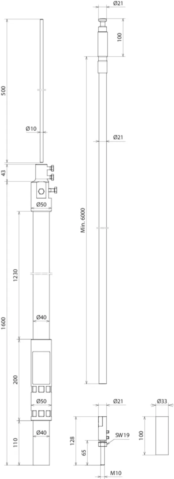 | Længde, støtterør | 1600 mm |