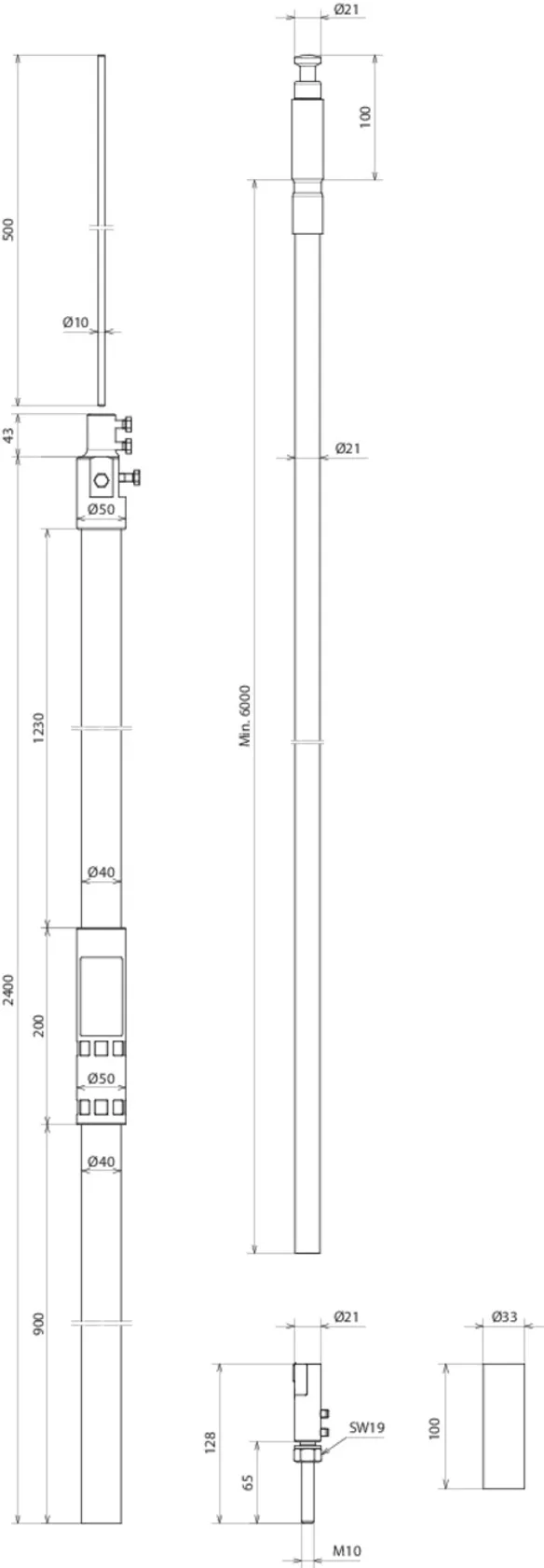 | Længde, støtterør | 2400 mm |