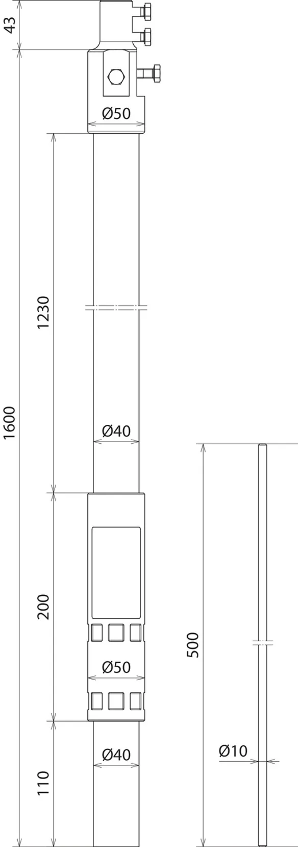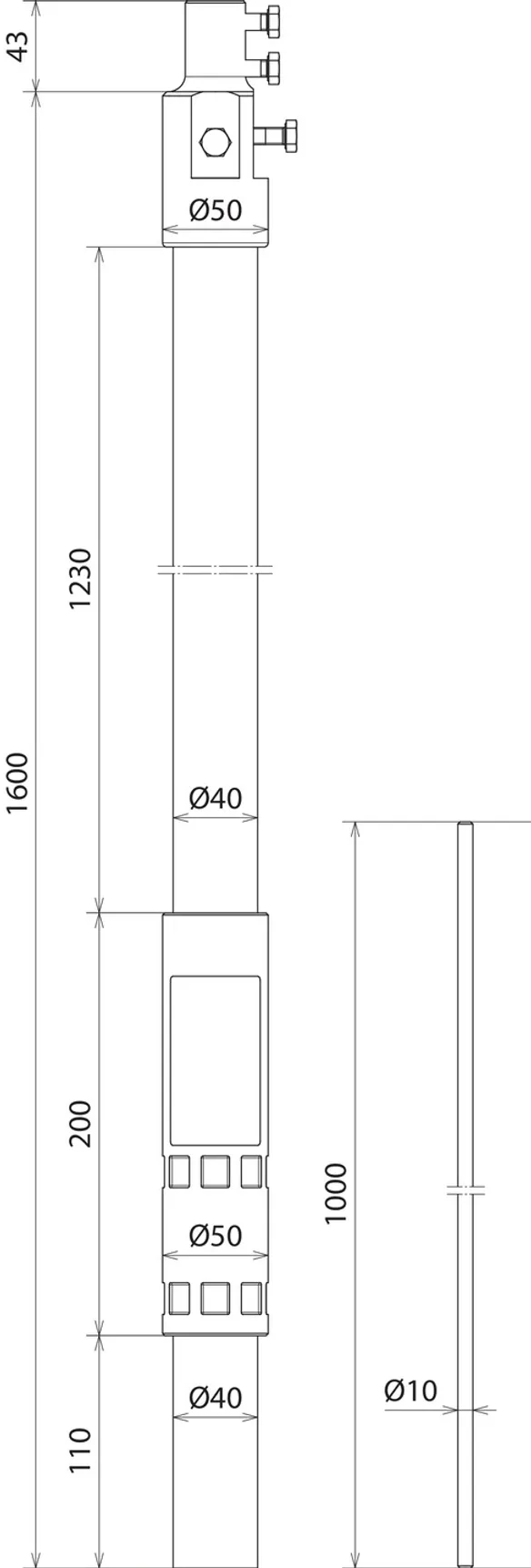 | Længde, støtterør | 1600 mm |