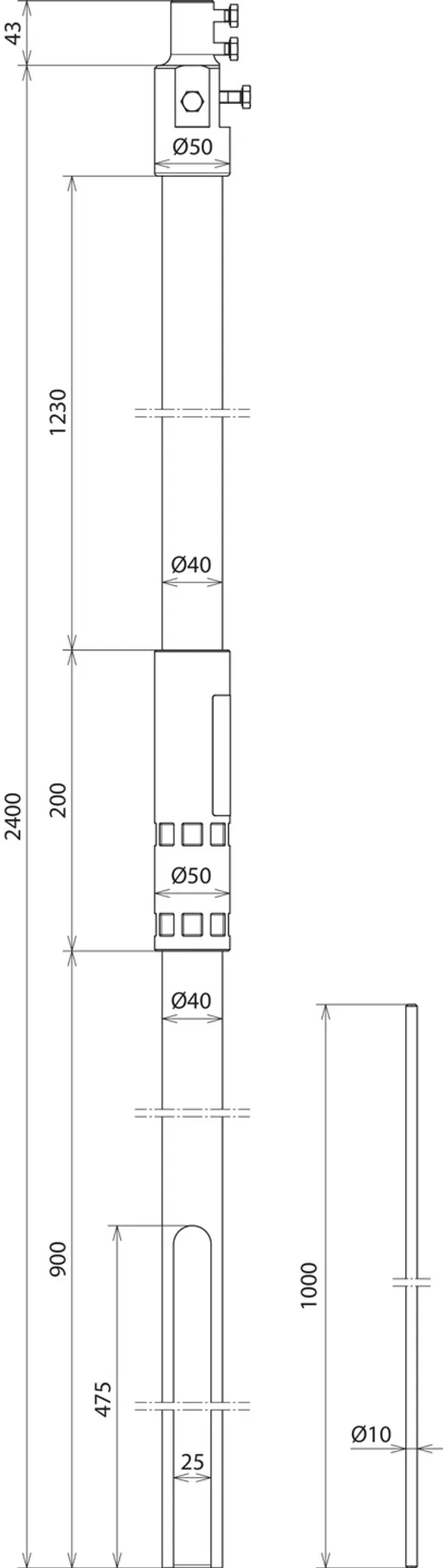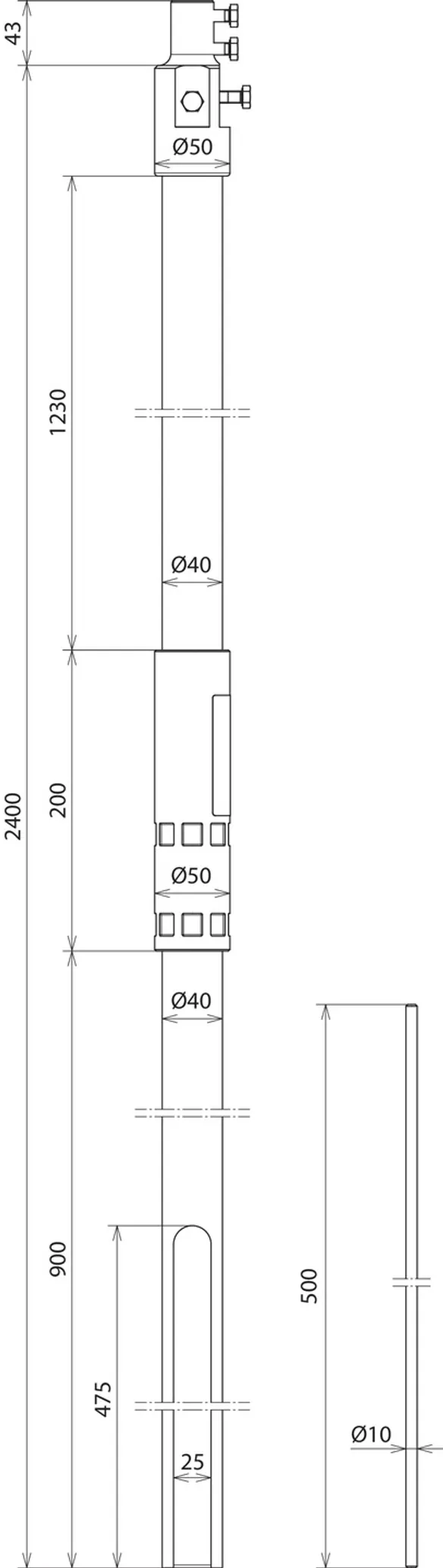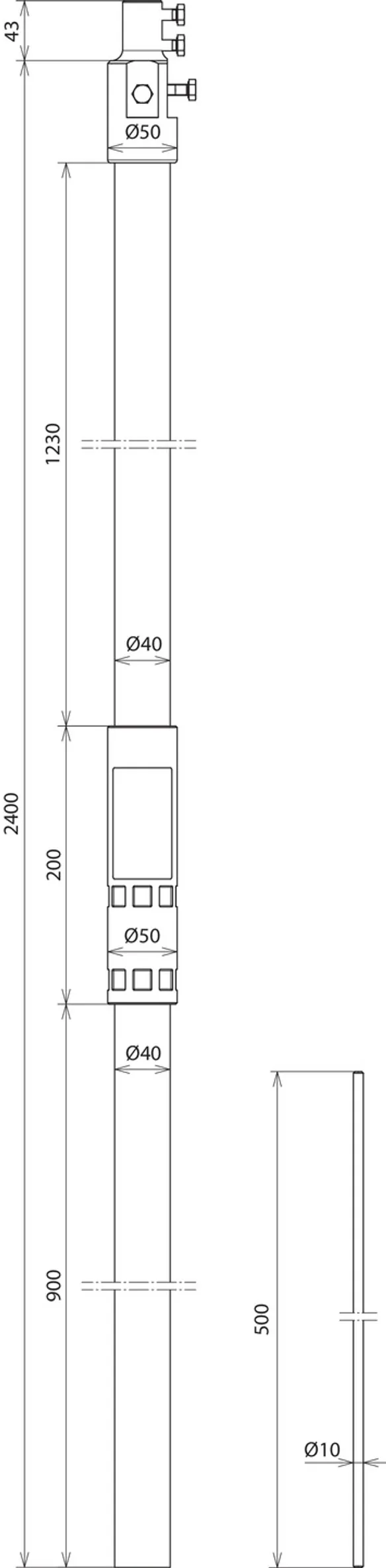 | Længde, støtterør | 2400 mm |