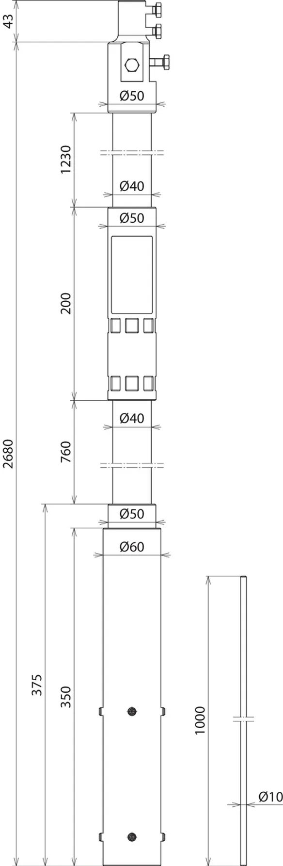 | Længde, støtterør | 2680 mm |
