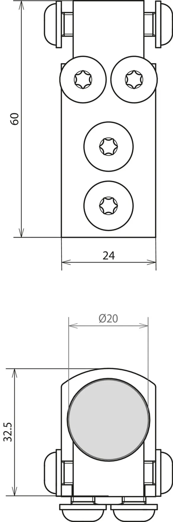 | Skruer | 6x M6 x 10 mm lTX30 (4x 2,5 mm2 - maks. 16 mm2) [2x jordelektrode/4x tilslutning] |